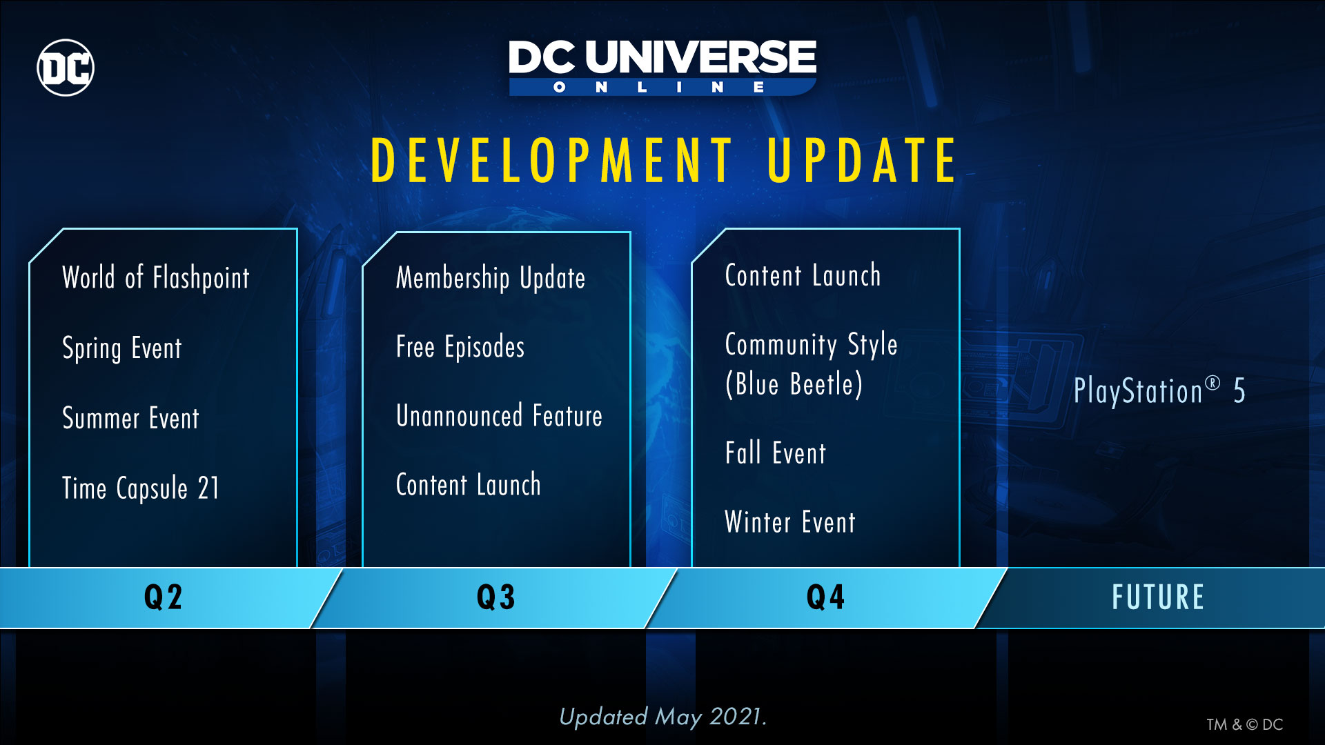 Looking ahead at the next couple of months, we will bee buzzing back into the spring seasonal event (May 13) and summer seasonal event (June) with new rewards, launch a new time capsule, and of course have World of Flashpoint and other ongoing bonus weeks. You like them; we like them. We don't see any reason to stop!